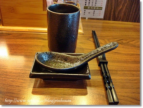 桌上的木盒裡放了兩種醬油,