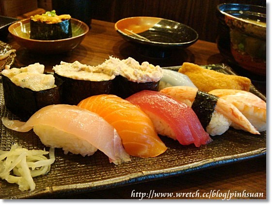 怕海苔放久會軟掉,所以我很聰明的從軍艦壽司開始享用