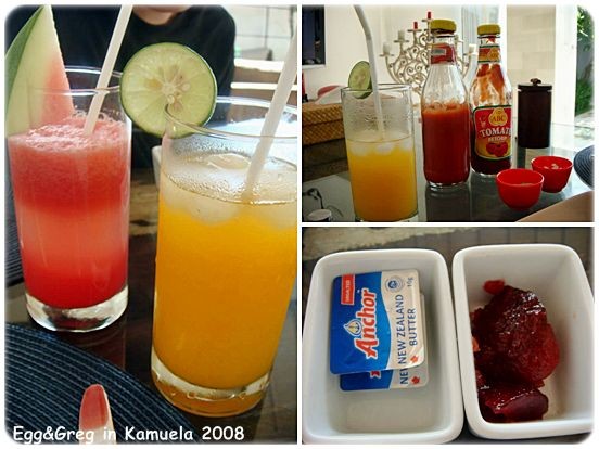 現榨果汁已經上桌,還稍稍裝飾了一番,果然帶兩位助手不是假的