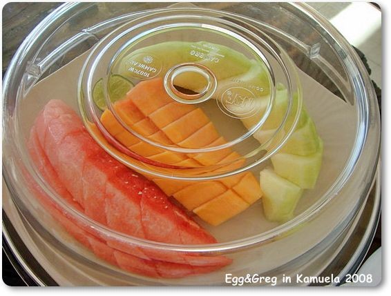 水果有西瓜、木瓜跟哈密瓜,怕小蟲來襲