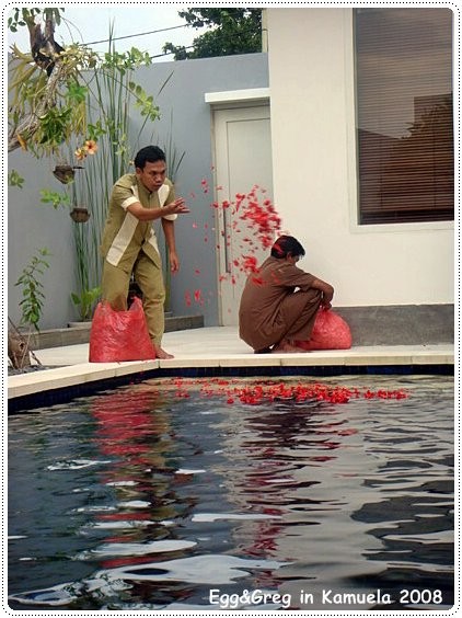 接著就大力的往我們的泳池天女散花灑灑灑