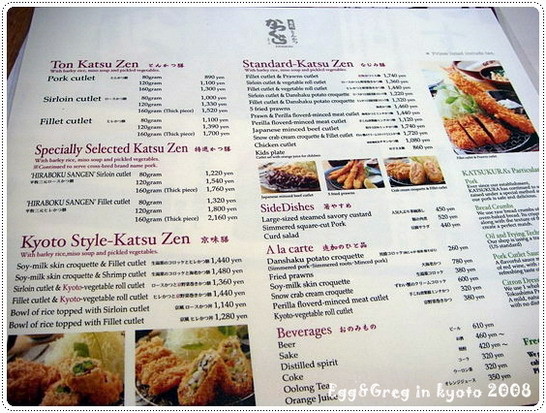 最後Greg選了120g的炸豬排,我選了80g上好部位的豬排(一堆日文裡只有「特上」這個中文,所以應該是好吃的吧)